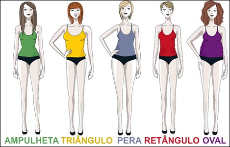 AMPULHETA: É o famoso corpo violão, ele caracterizado por ombros e quadril com dimensões semelhantes.